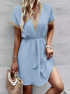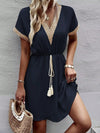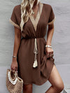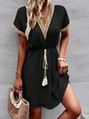 Abito da donna elegante con cintura e frange con scollo a V per l\"estate