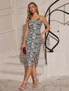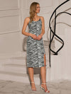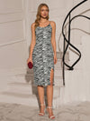 Abito midi con stampa zebrata e dettagli con catena per donna