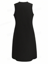 Vestito casual nero senza maniche con scollo a V e colletto a stelo per signore