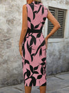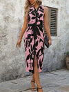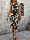 Vestito Da Camicia Senza Maniche Con Stampa A Foglie Per Donna