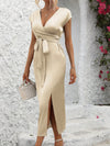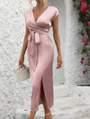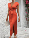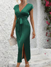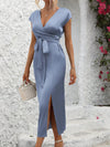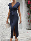 Abito casual con scollo a V, maniche a pipistrello con spacco per l'estate