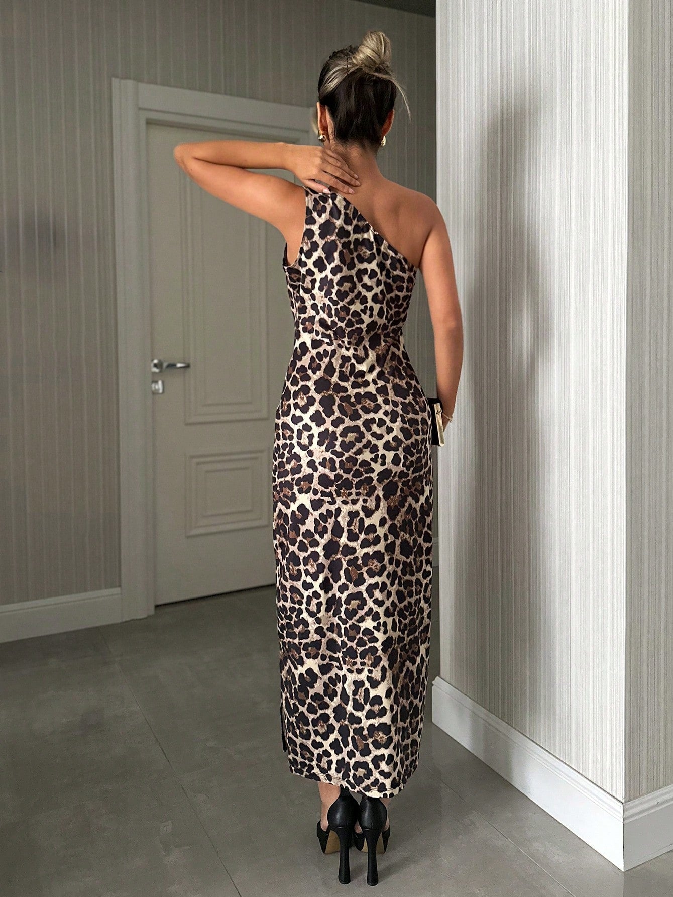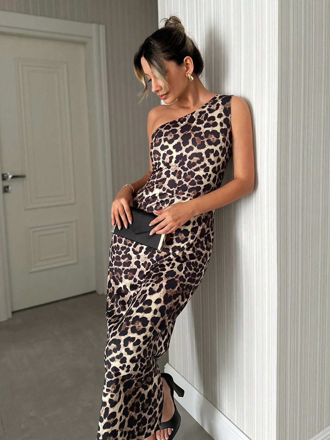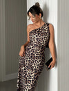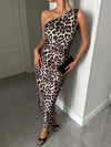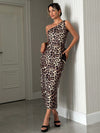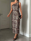 Abito lungo aderente senza maniche con stampa leopardata per donna