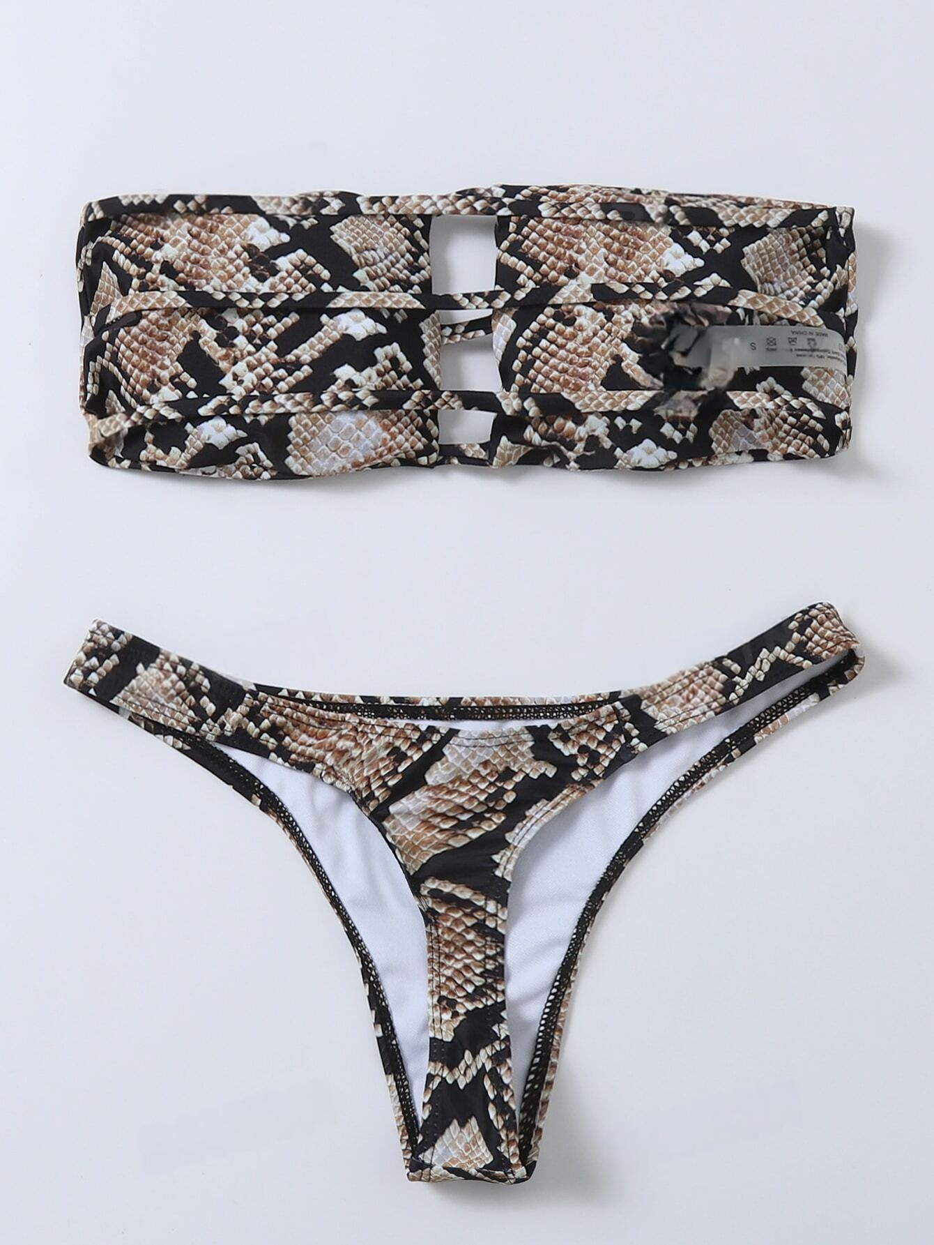 Set bikini con stampa effetto serpente Reggiseno a fascia cut out & Bottom con taglio alto 2 pezzi Costume da bagno