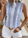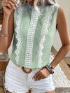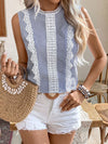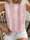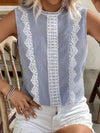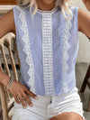 Blusa senza maniche a collo tondo in pizzo a righe patchwork