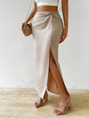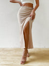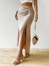 Gonna casual a tinta unita con dettaglio di nodo in vita alta e fessura per la primavera e l'estate