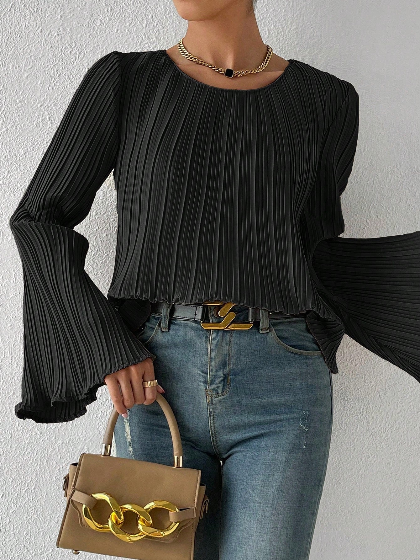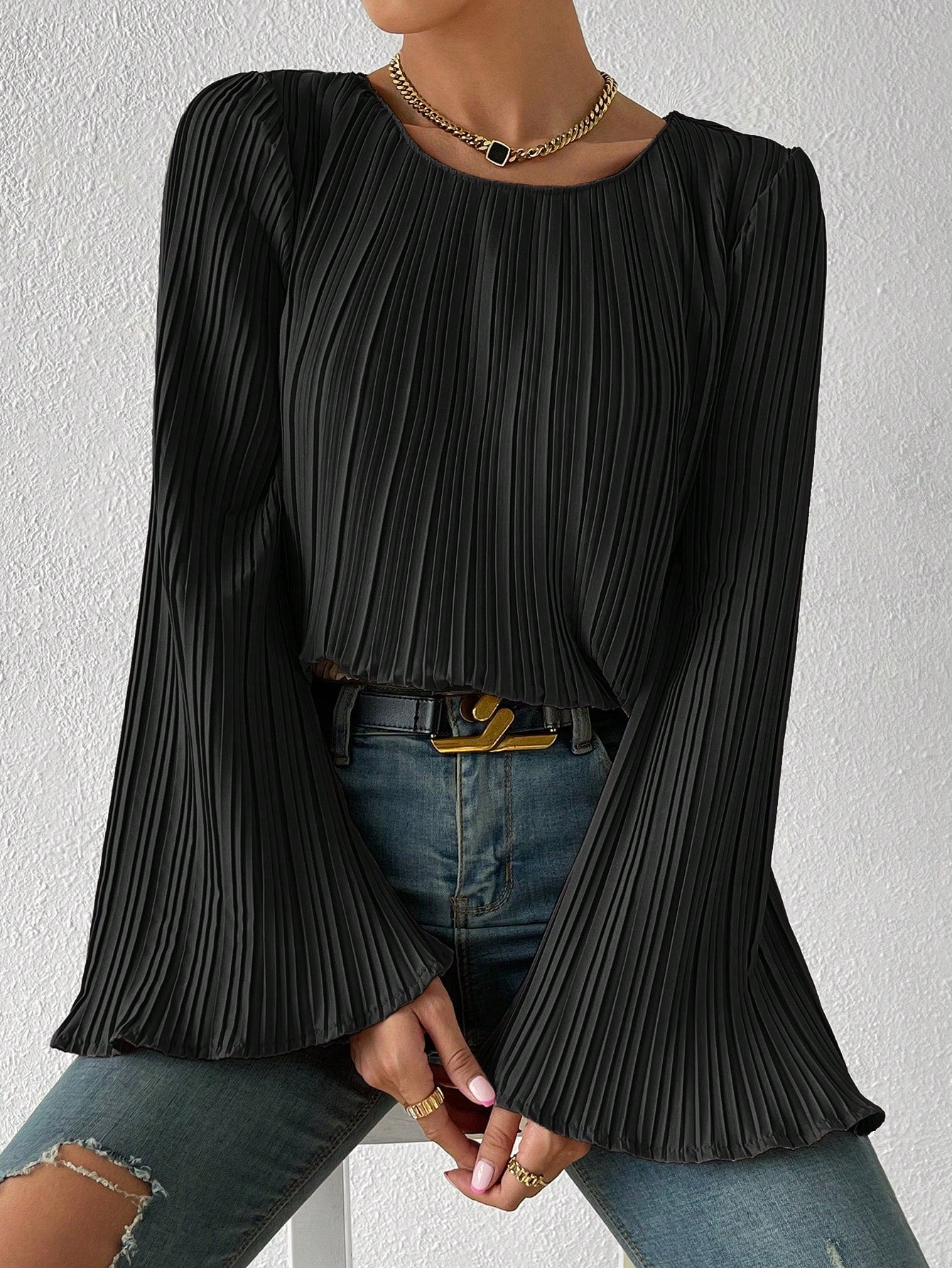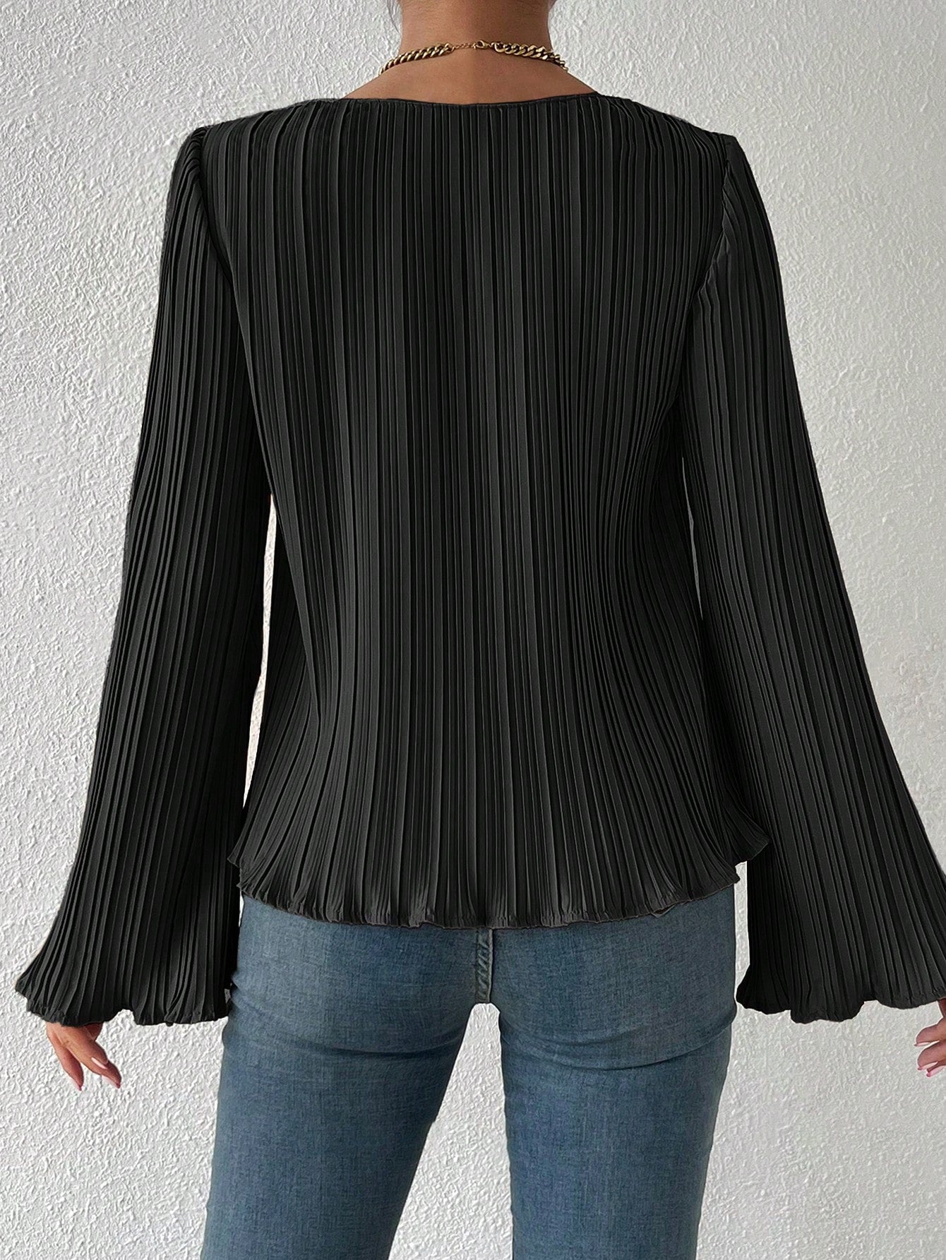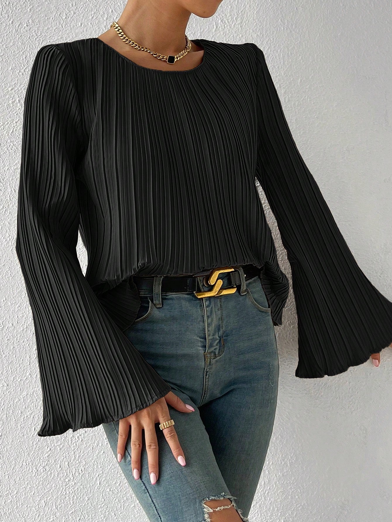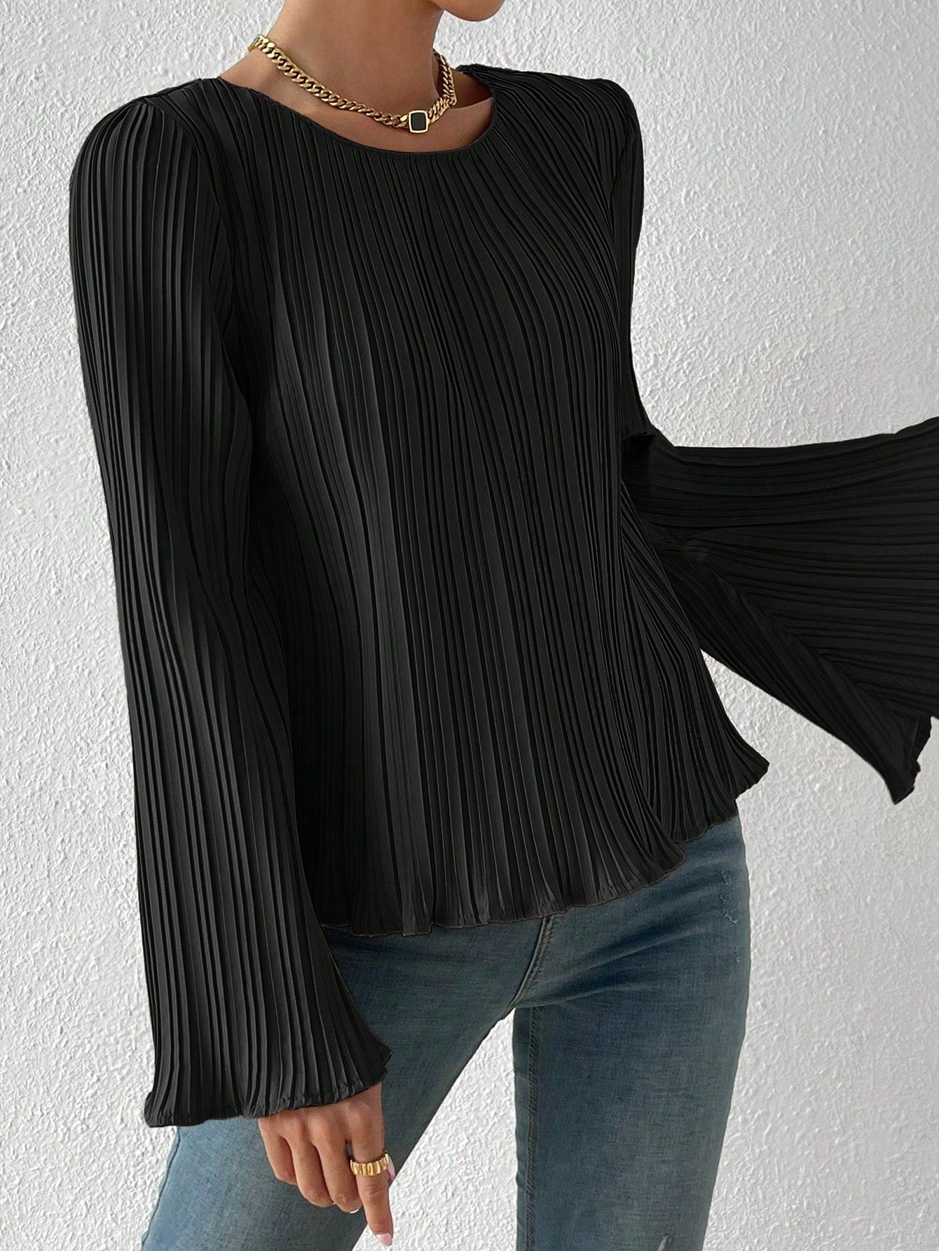 Camicetta monocolore manica a campana plissettato