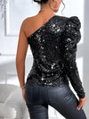 Camicetta monospalla manica gigot paillettes