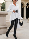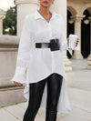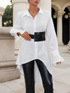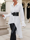 Camicia a maniche lunghe con orlo asimmetrico e cintura