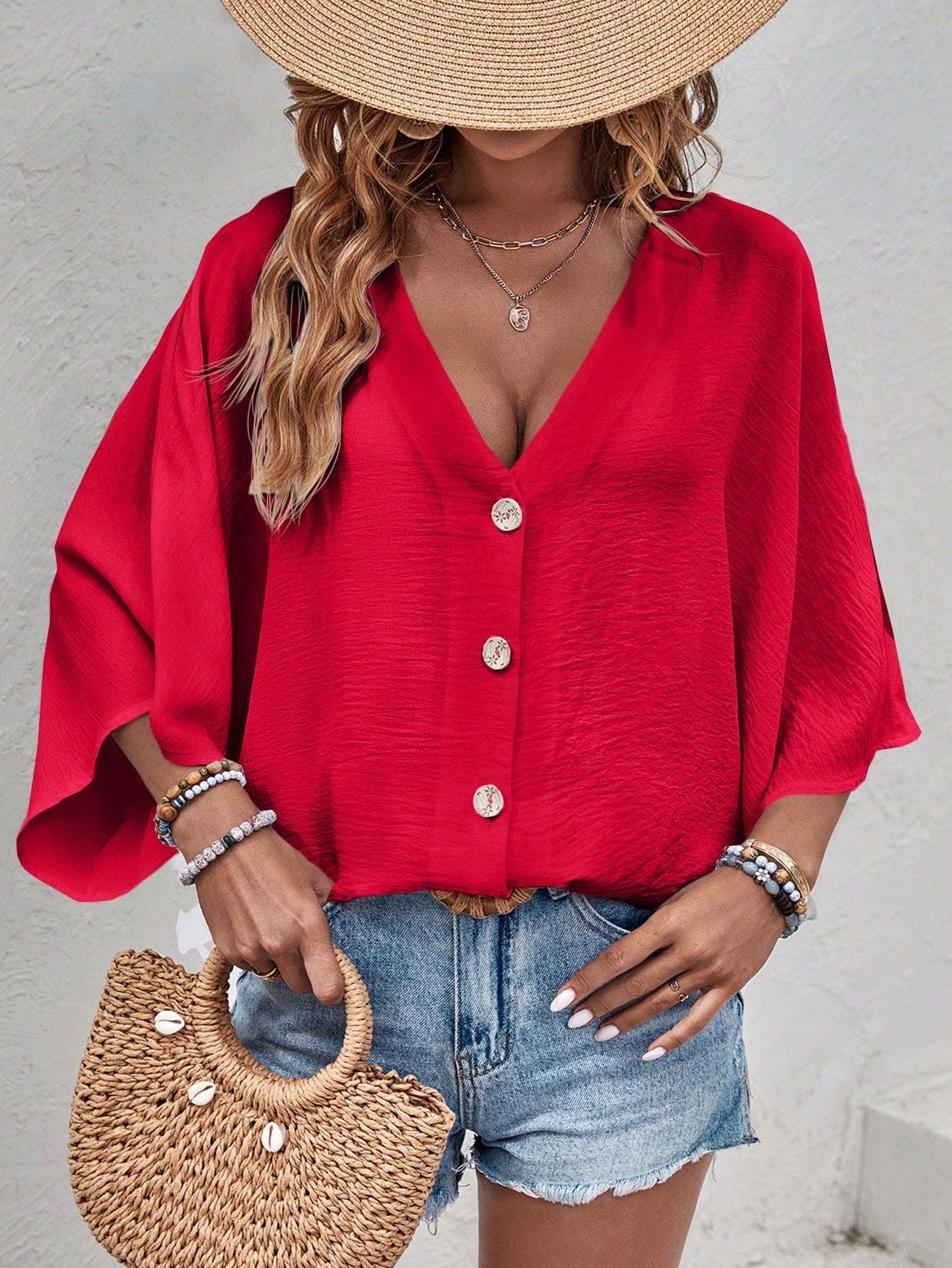 Camicia Casual Con Bottoni Frontali E Collo In Tessuto Testurizzato