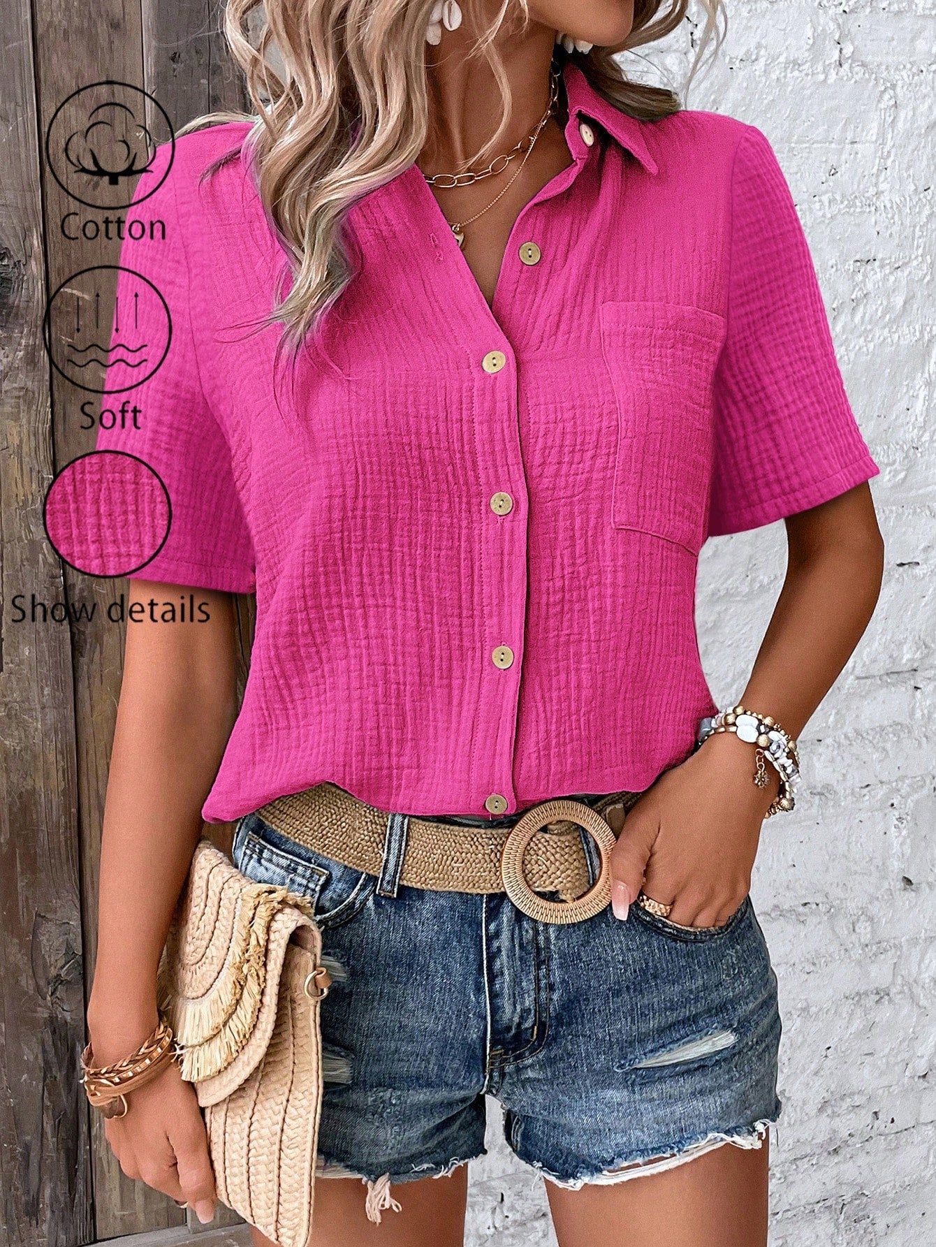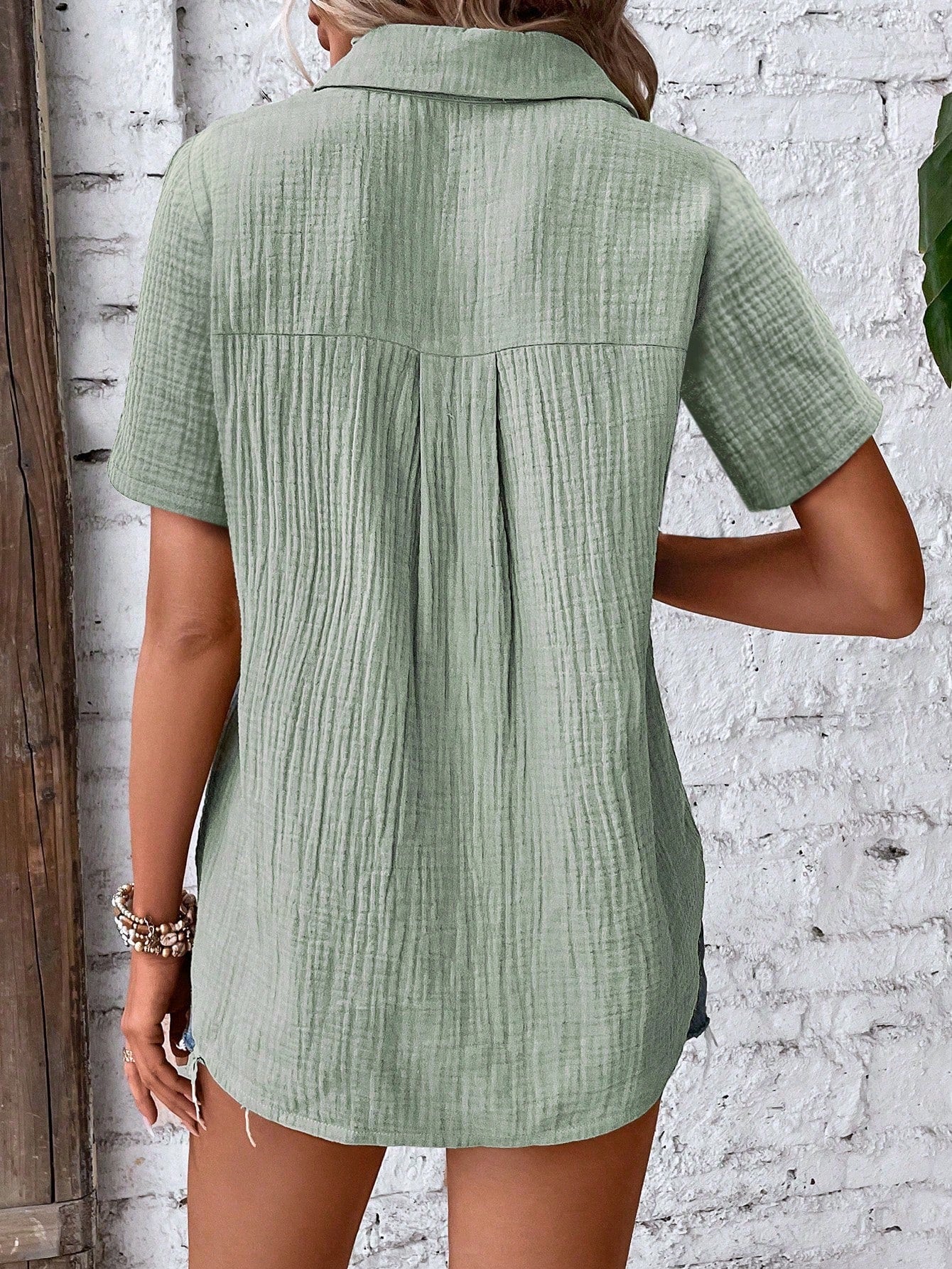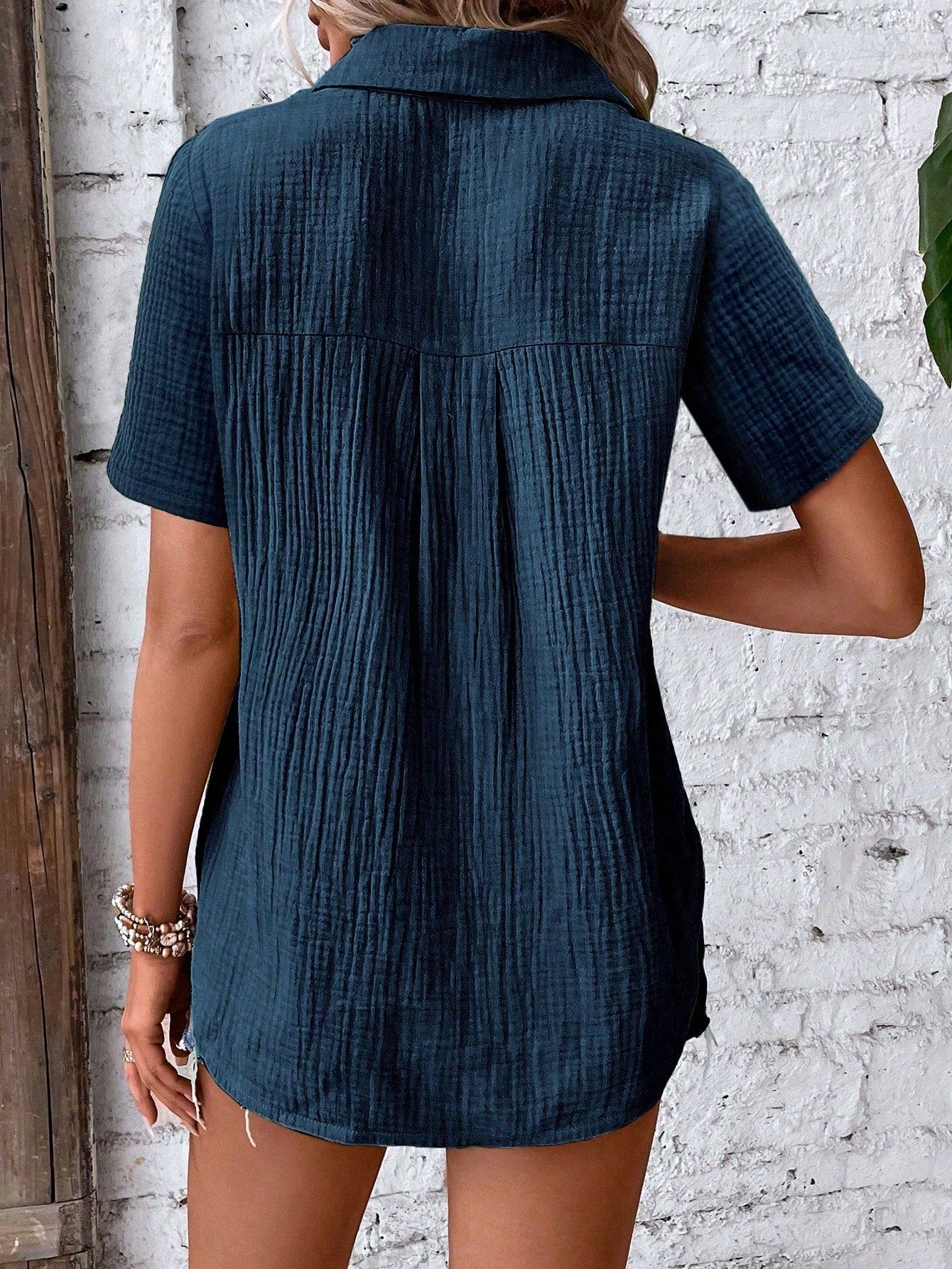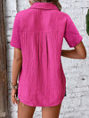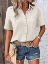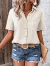 Camicia da donna con bottoni frontali, maniche corte e tessuto a trama per un look casual estivo