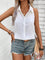 Camicia Estiva Senza Maniche Da Donna Con Colletto A Revers, Fronte Aperto, Tessuto A Strisce Con Motivo A Onde, Casual E Confortevole Per Le Vacanze