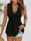 Canotta Con Scollo A V E Profilo Peplum Con Pizzo A Contrasto