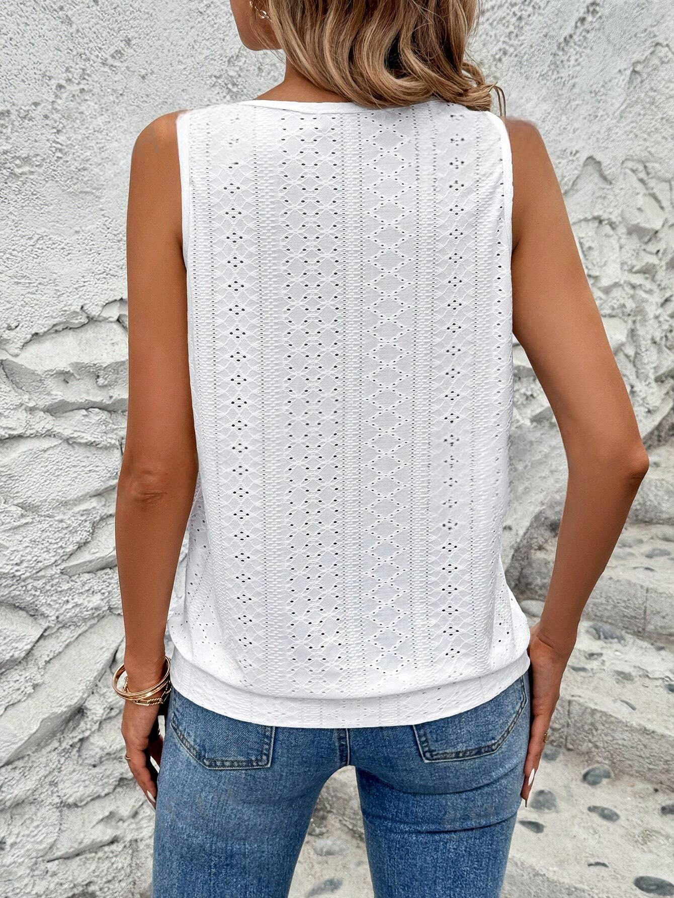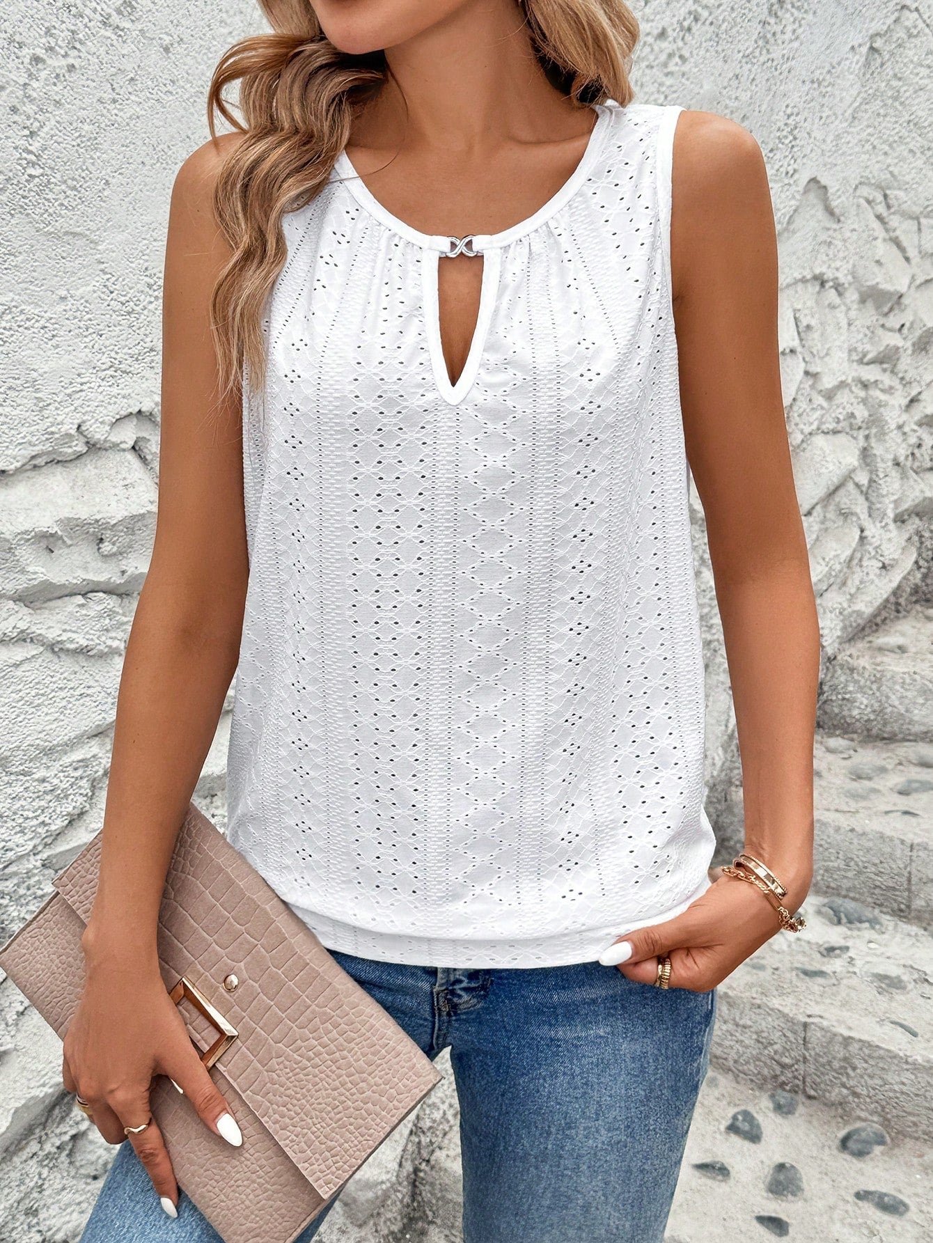 Canotta senza maniche con ricamo floreale bruciato e scollo a chiave per donne, estate