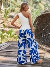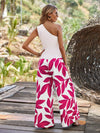 Completo Donna Con Motivo Stampa Albero Di Foglie, Con Top A Spalle Scoperte E Pantaloni Lunghi