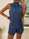 Set Top Senza Maniche E Pantaloncini Con Bordi Arricciati Plissettati