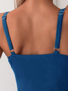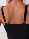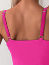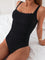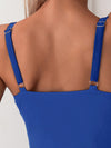 Costume Da Bagno Intero Semplice E Alla Moda Per Le Donne Con Bordo A Cappa E Vita Arricciata In Tessuto Colorato Solido Per Le Vacanze Estive In Spiaggia Con Spalline