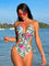Costume intero con stampa tropicale scavato con lacci laterali halter