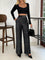 Pantaloni in tessuto lucido con applicazioni e tasche, con vestibilitˆ a palazzo, per donna