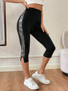 Leggings alla moda da donna con bordi divisi e patchwork con scintillio casuale