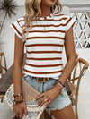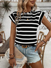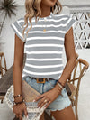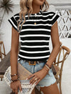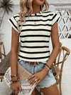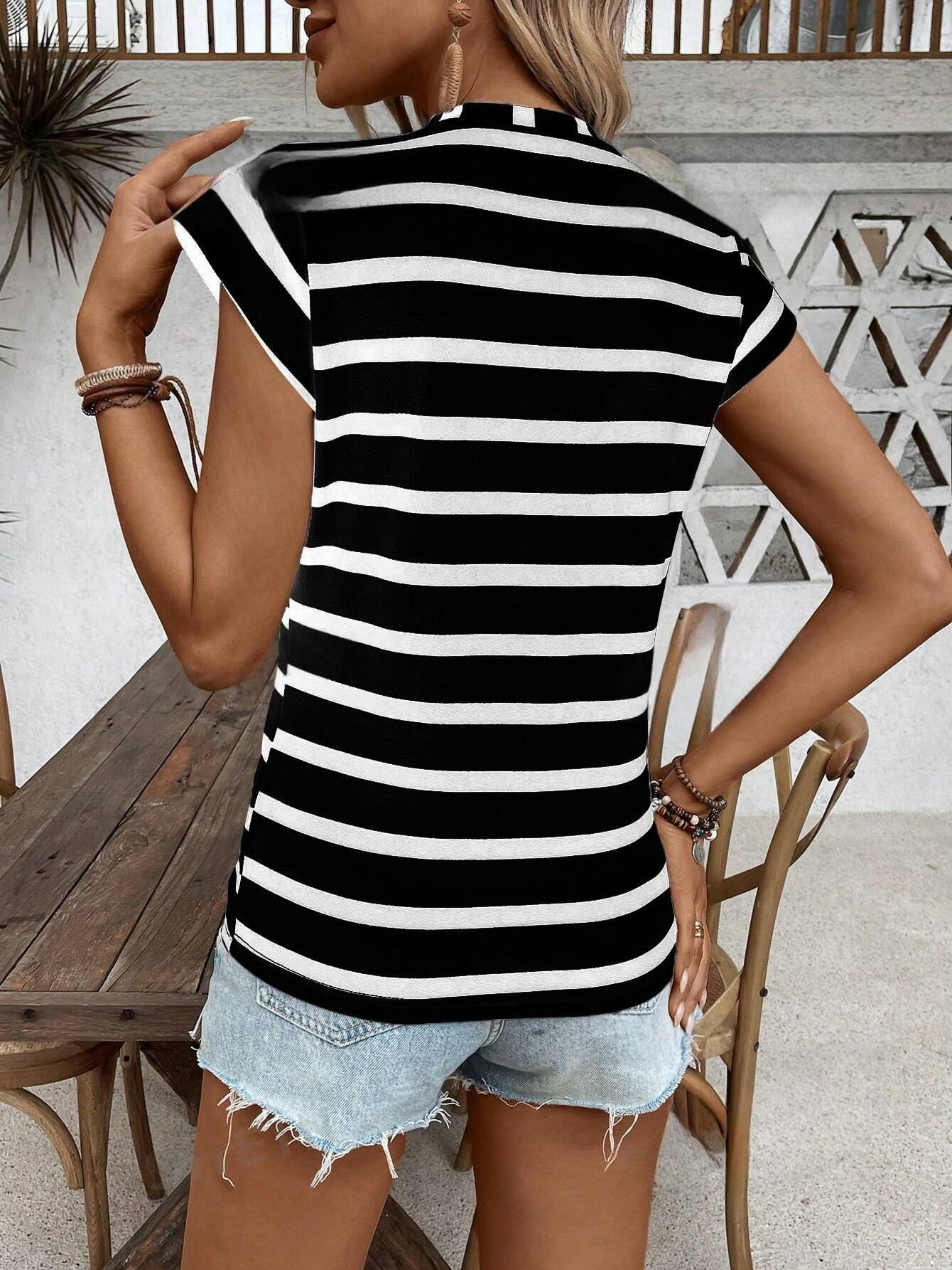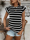 Maglietta casual estiva da donna a righe stampate con girocollo e maniche corte