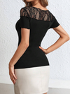 Maglietta Nera Con Maniche Corte In Pizzo A Patchwork Per Donna