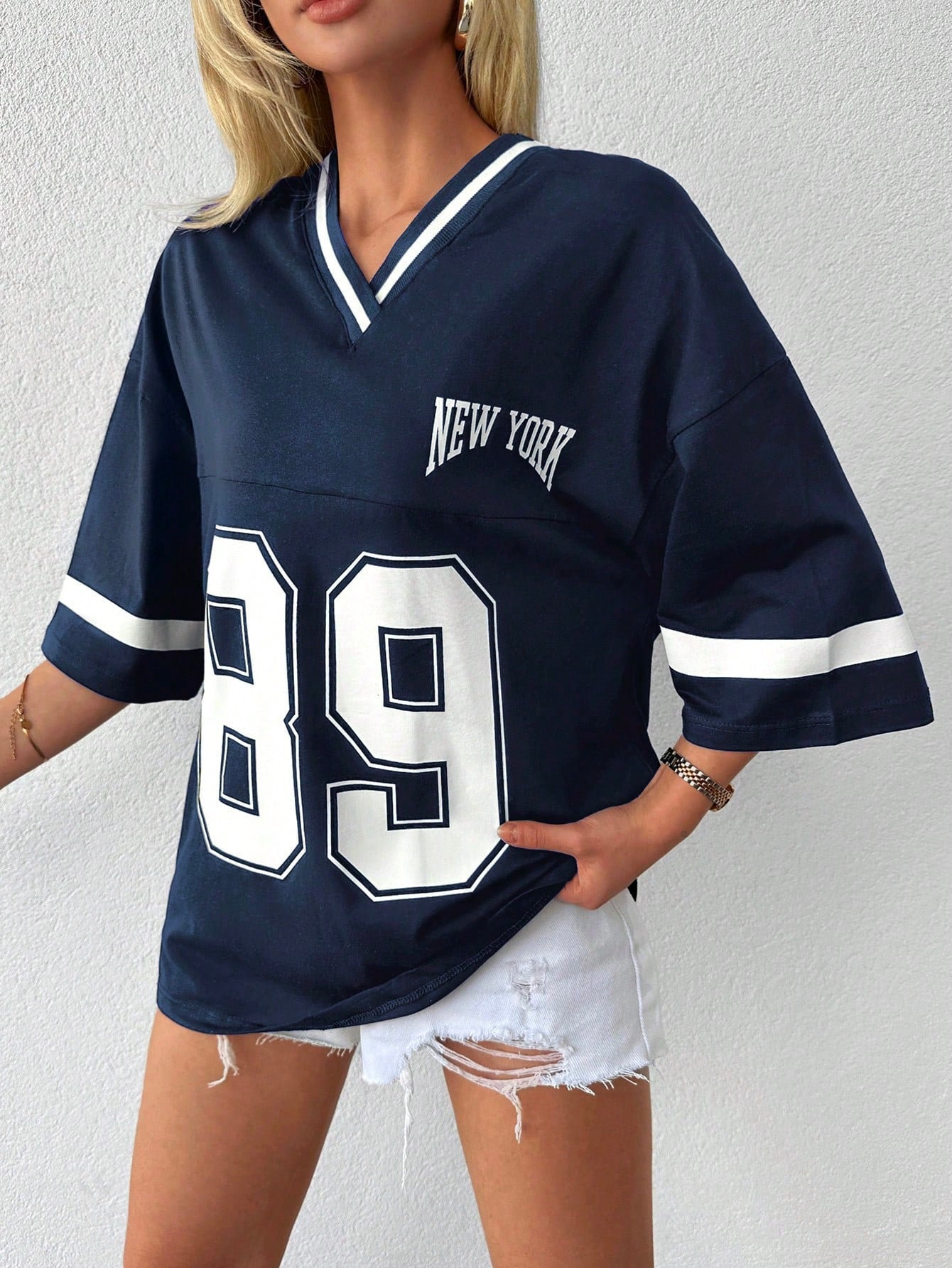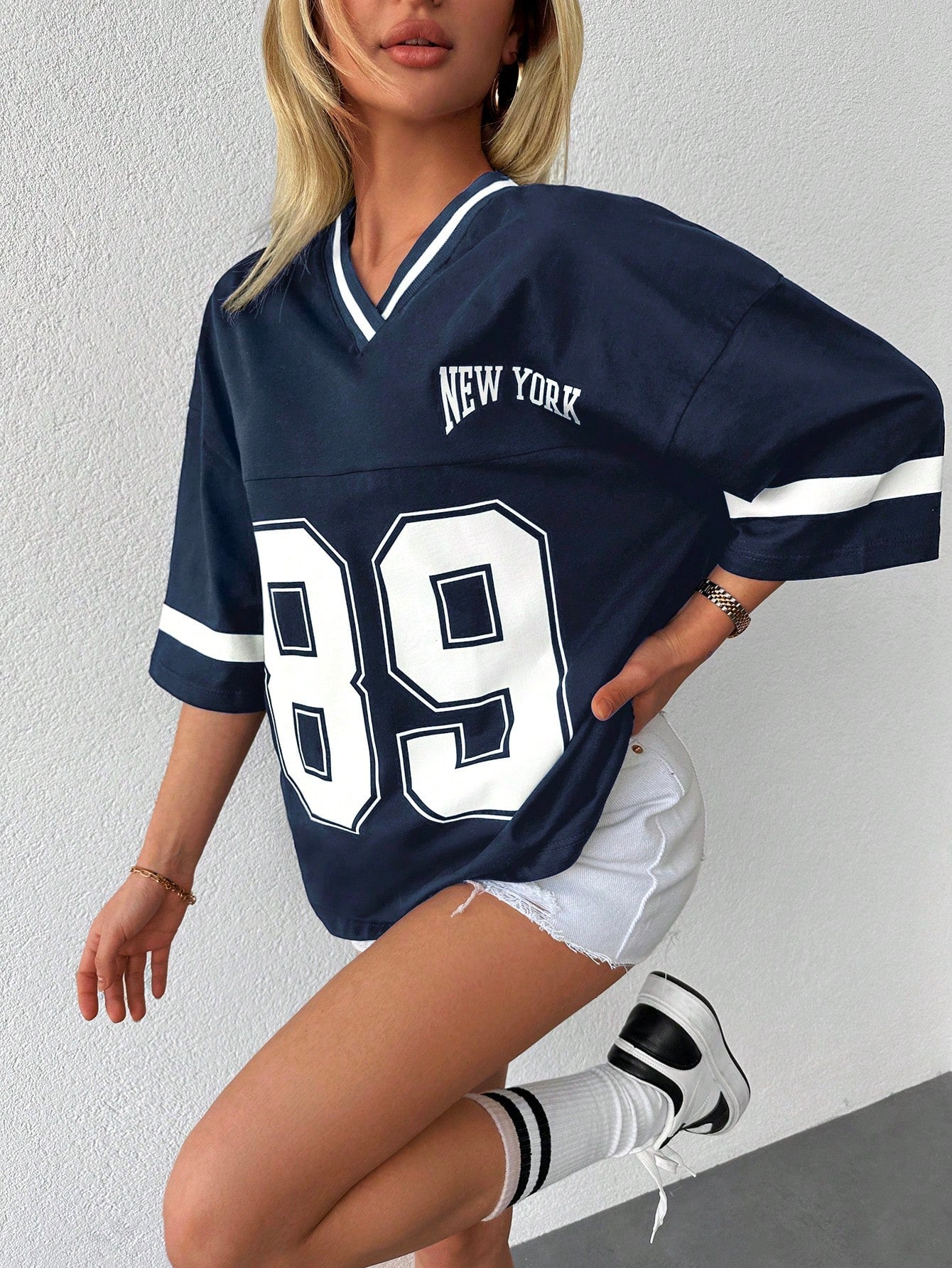 T-shirt a spalle scoperte con stampa di numeri