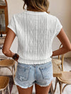 T-shirt estiva semplice per vacanze al mare da donna con manica pipistrello, collo tondo in tessuto a trama testurizzata