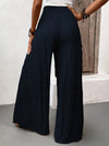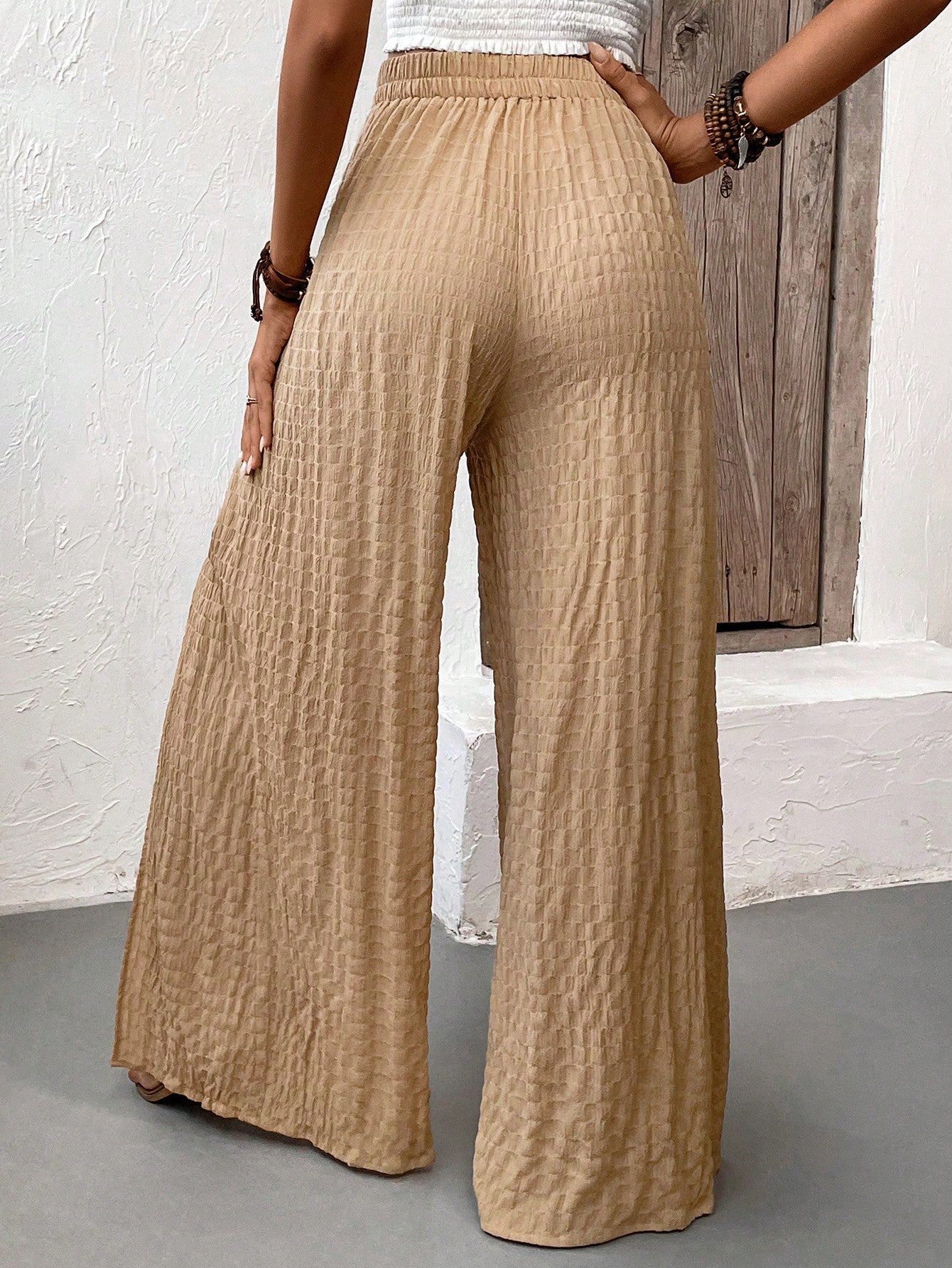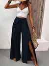 Pantalone casual estivo in tessuto a pieghe solido con vestibilitˆ ampia e taglio largo diviso