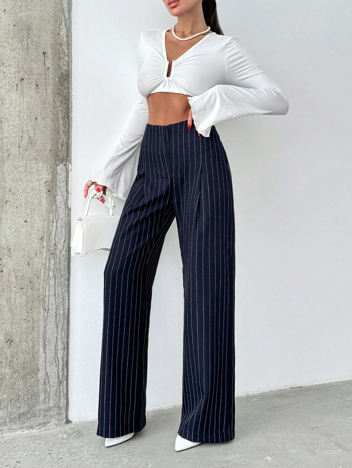 Pantalone con vestibilitˆ regular e motivo a righe