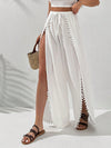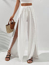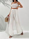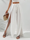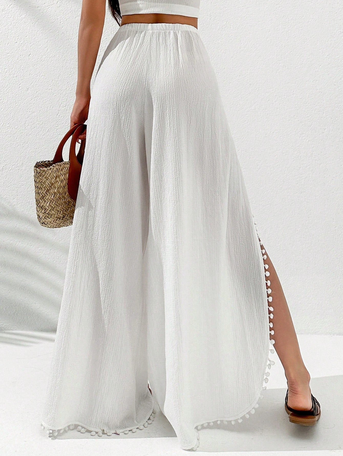 Pantaloni a gamba svasata in tessuto a maglia con texture, decorati con orlo a sbuffo sul fondo