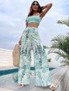 Pantaloni a palazzo con stampa di piante, outfit da crociera per donne