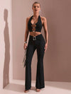 Pantaloni a zampa casual a righe con pieghe e decoro a rombo quadrato
