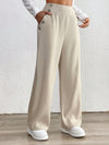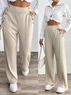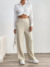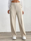 Pantaloni casual da donna a gamba dritta monocromatici con tasche e decorazione con bottoni, ideali per le vacanze