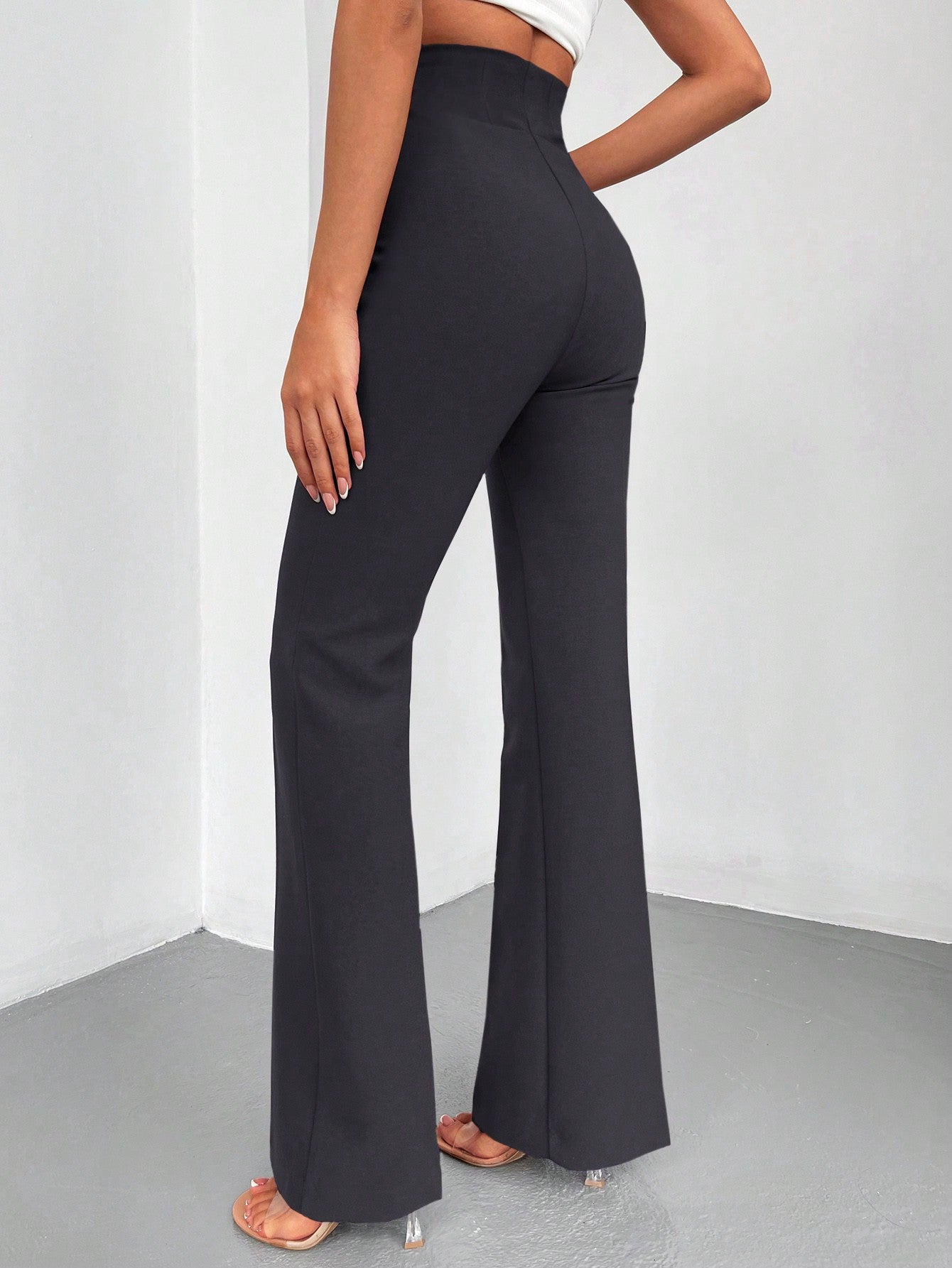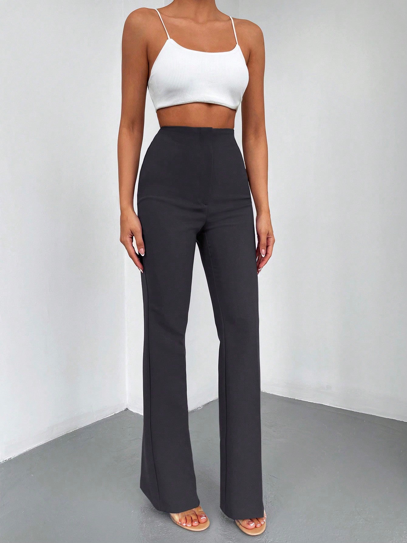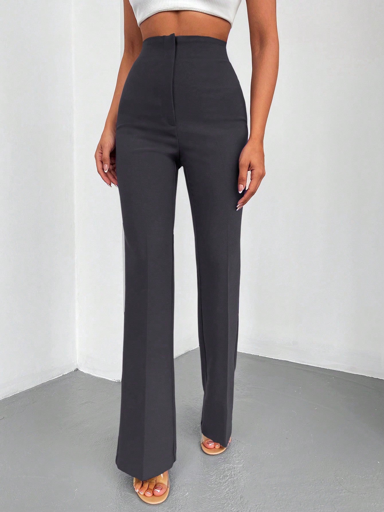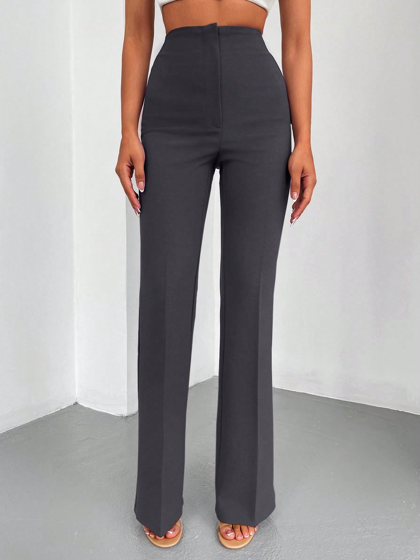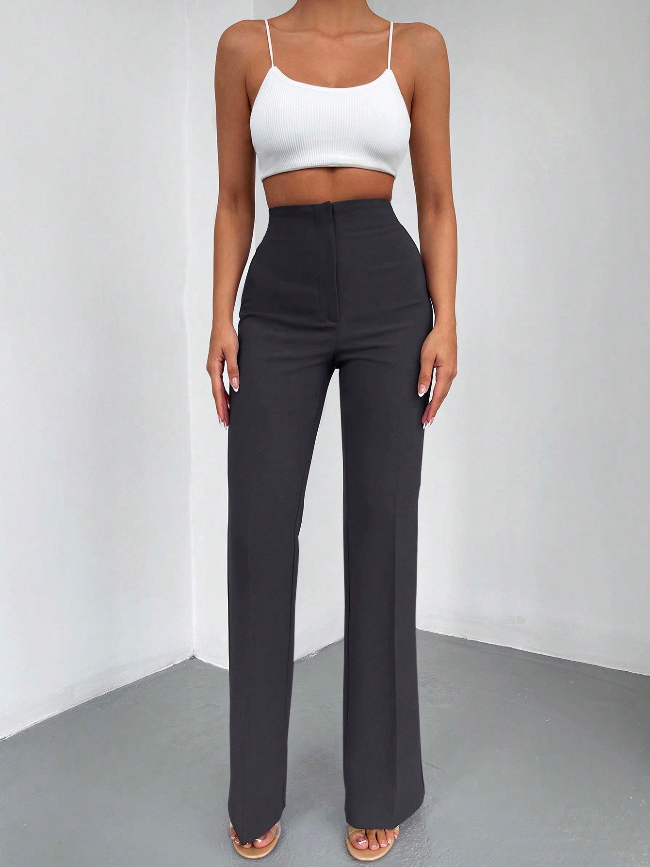 Pantaloni casual/da lavoro dritti a vita alta di colore unito da donna
