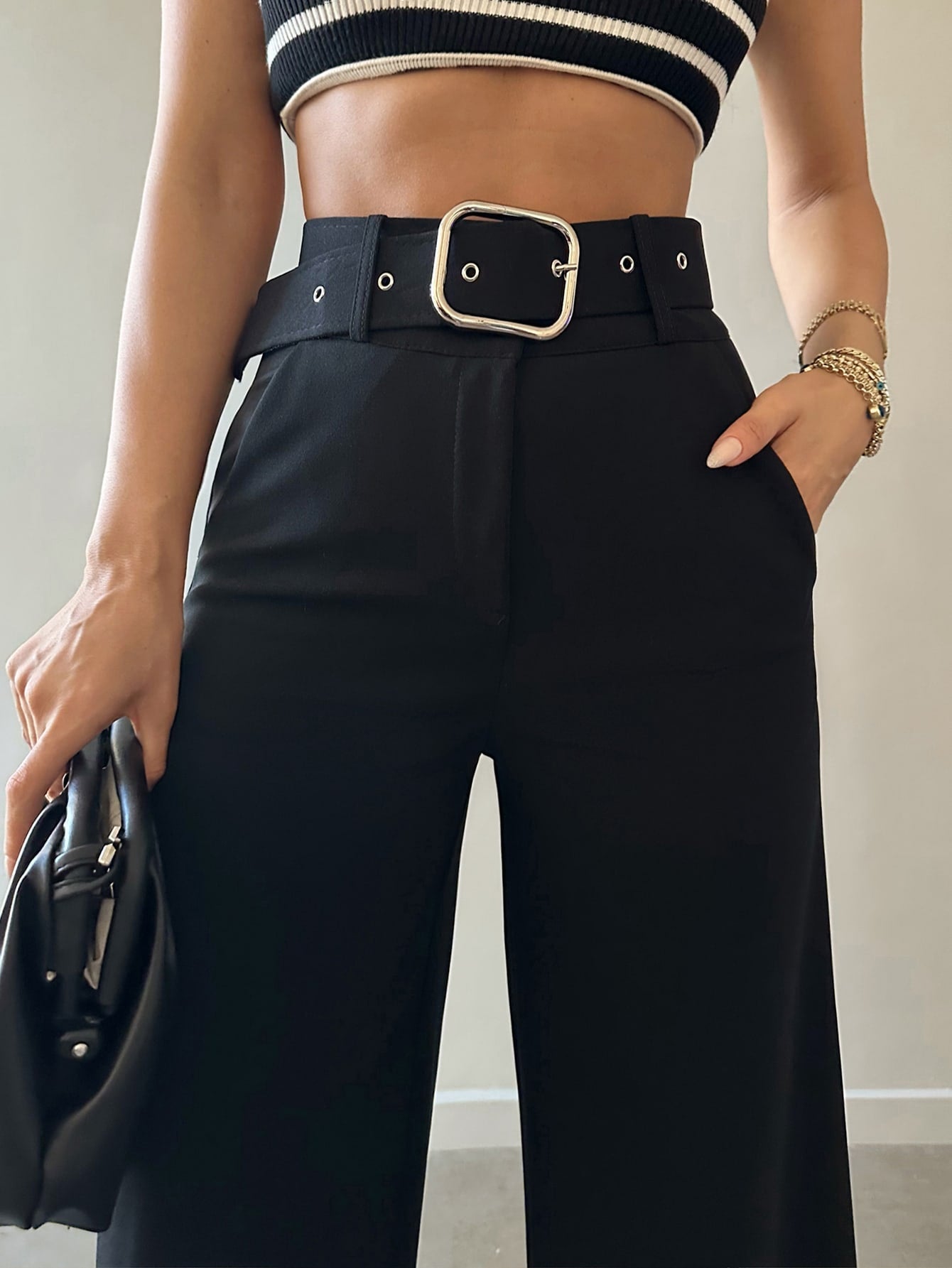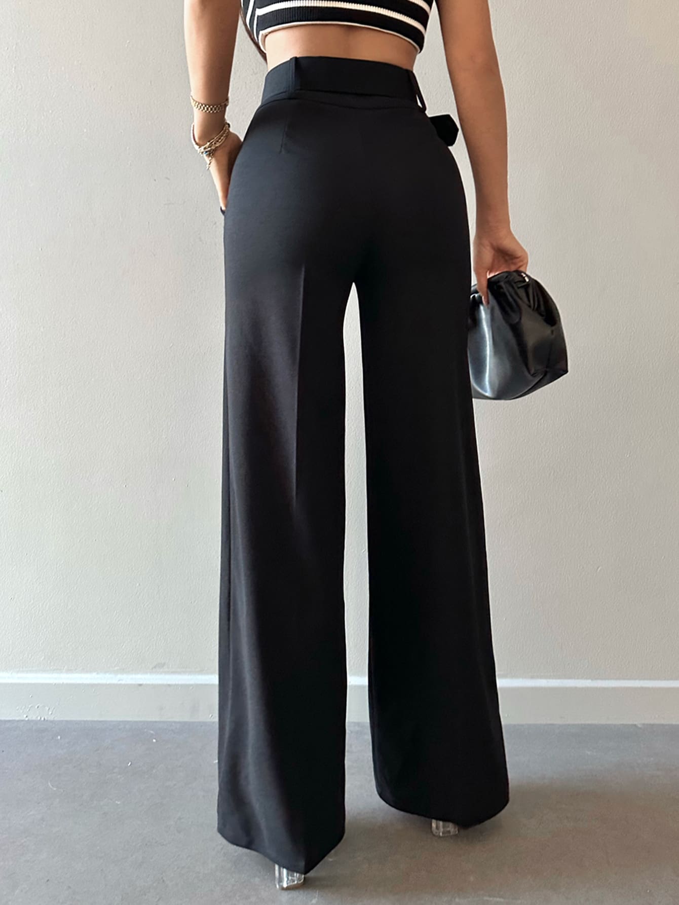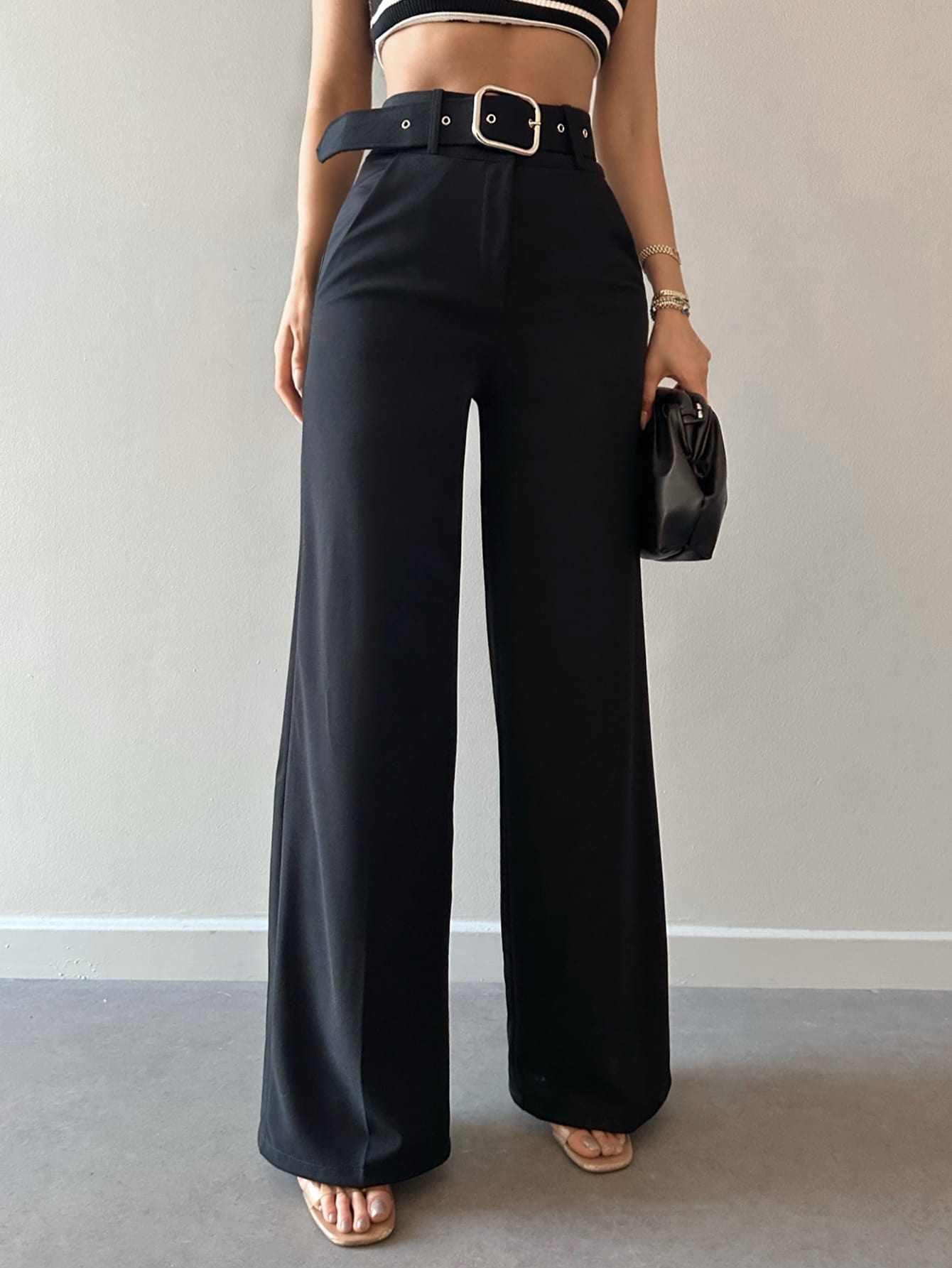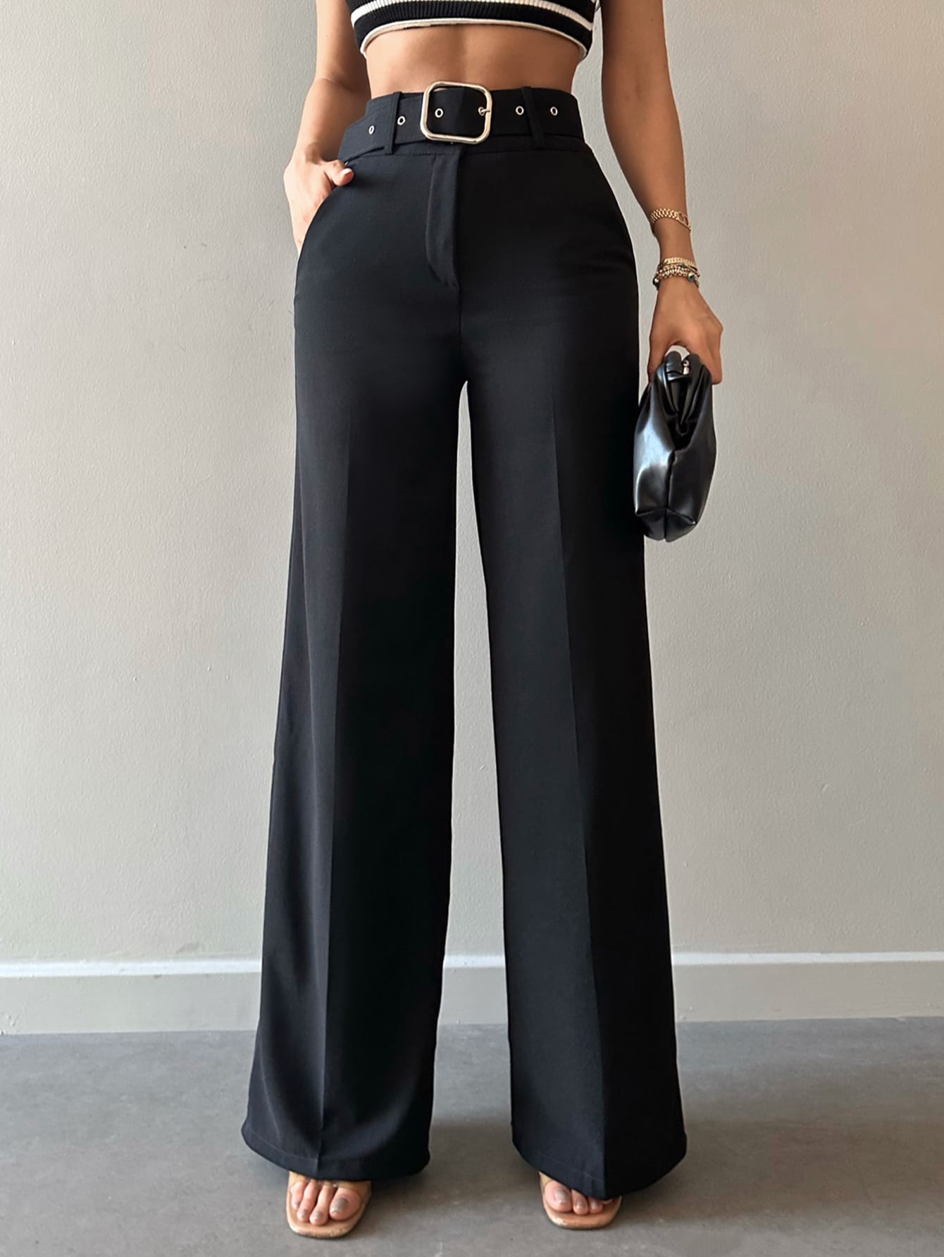 Pantaloni suit vita alta con cintura gamba ampia