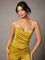 Corsetto raccoglitore asimmetrico in raso senza spalline senape