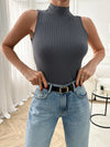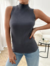 Maglietta senza colletto e senza maniche di colore tinta unita casual