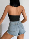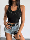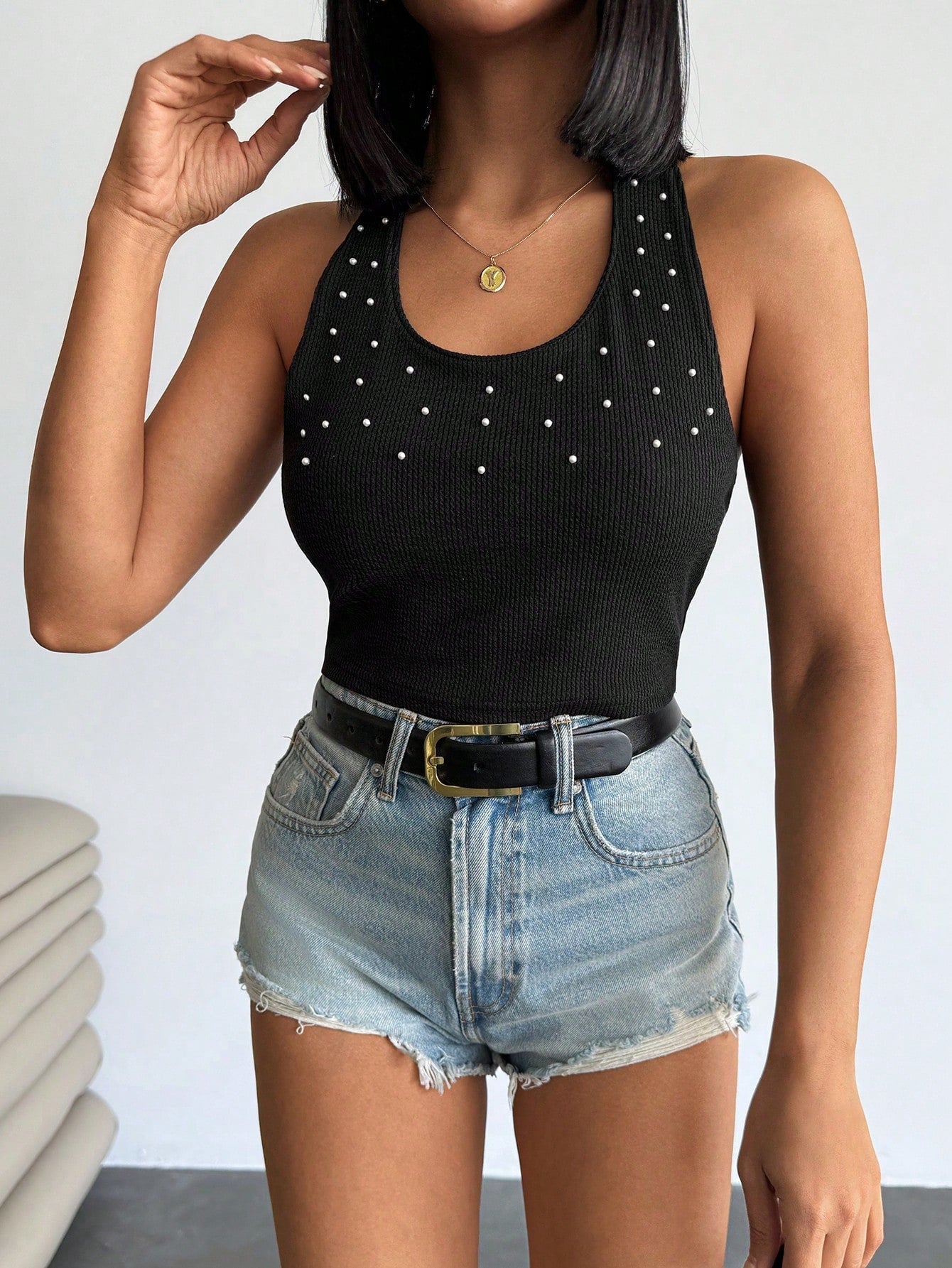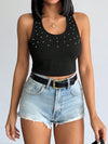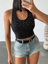 Top Halter aderente con decorazione in perle finte