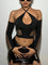 Top Nero Con Spalle Scoperte E Maniche In Pizzo Bruciato Con Scollo All'americana Incrociato
