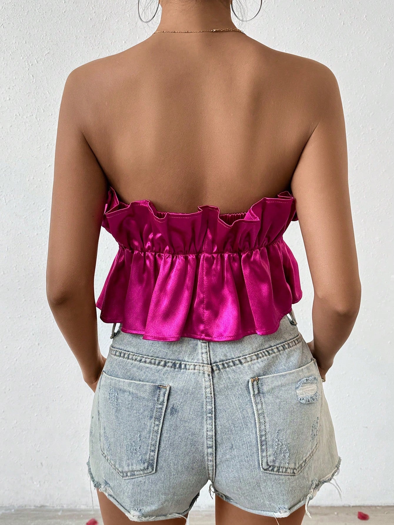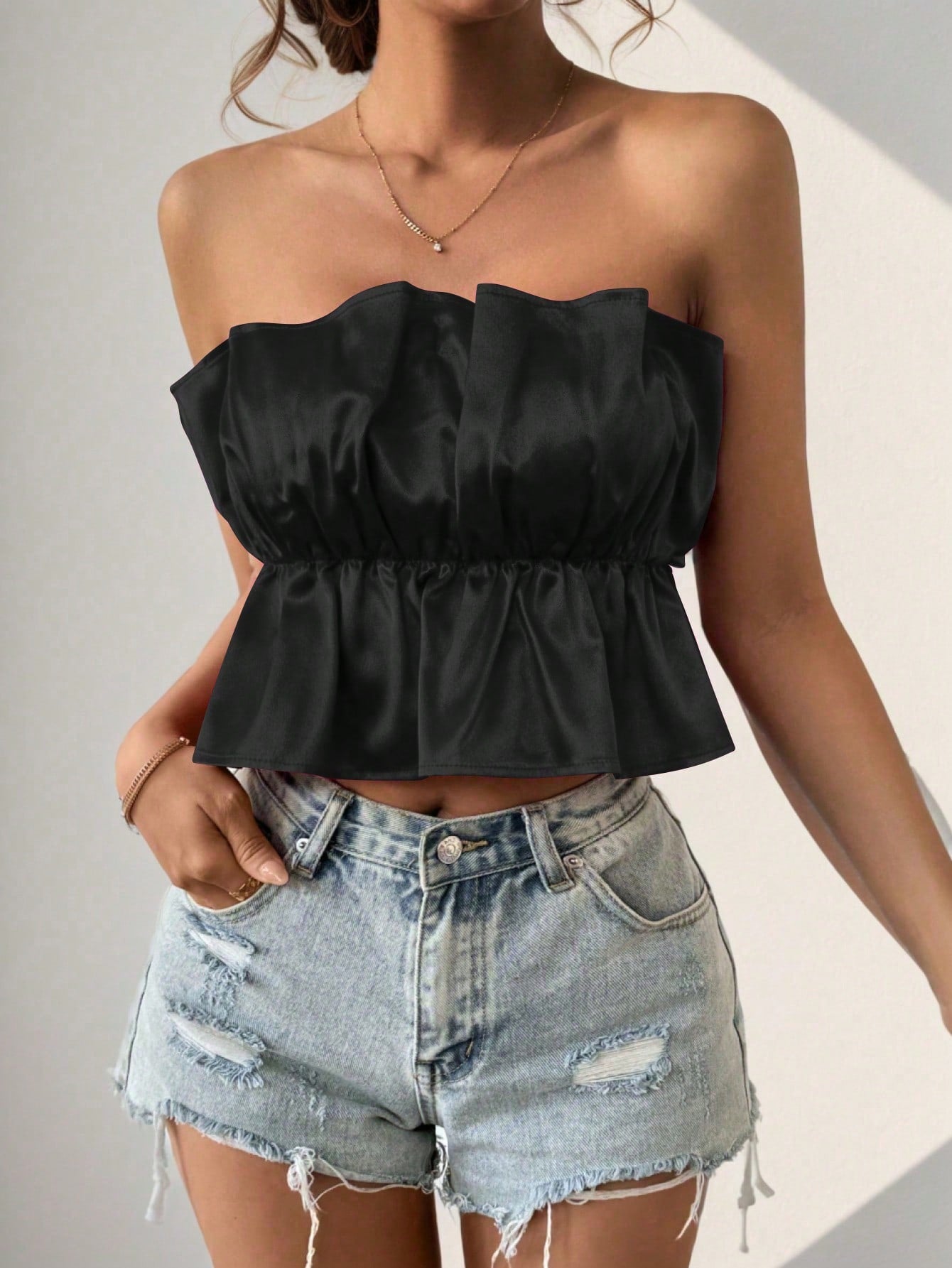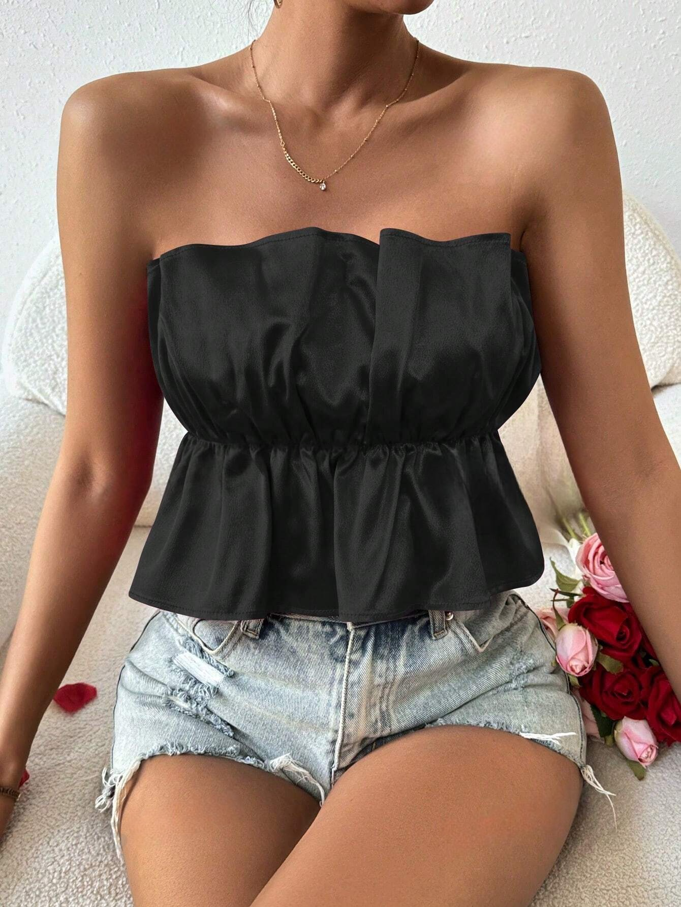 Top sbarazzino senza spalline semplice e di tutti i giorni dal colore unito per donna