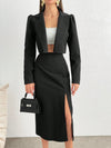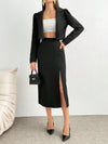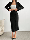 Completo due pezzi, blazer da donna e gonna a matita con vita alta e spacchi