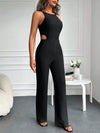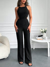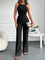 Jumpsuit con bretelle sottile monocolore con gamba svasata