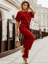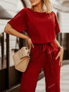 Jumpsuit monocolore con manica a pipistrello con cintura