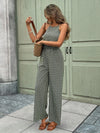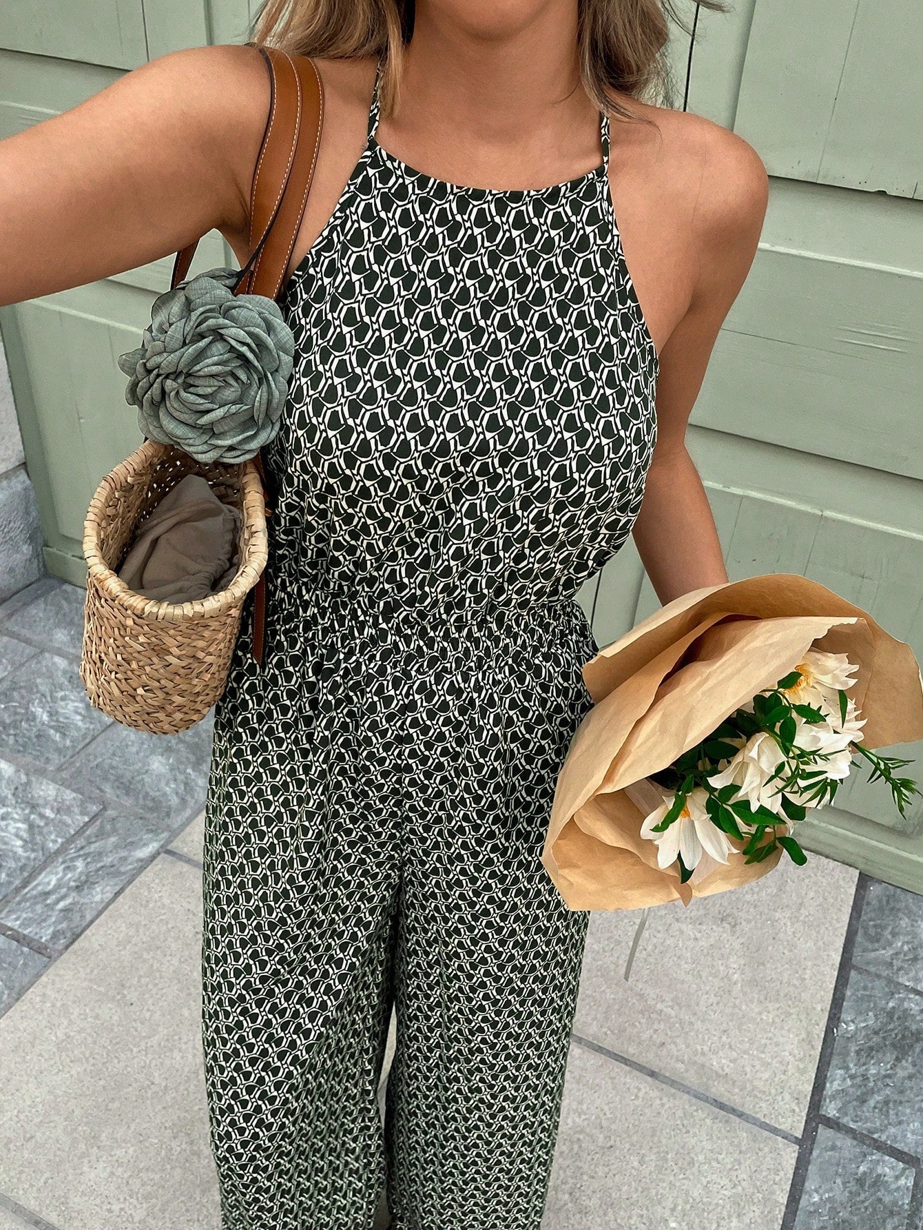 Tuta A Righe Geometriche Stampate, Con Collo A Halter E Pieghe In Vita Per Le Donne