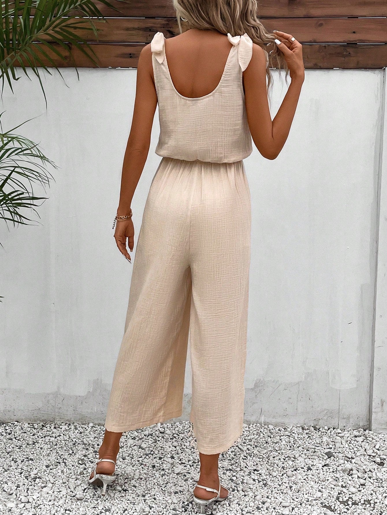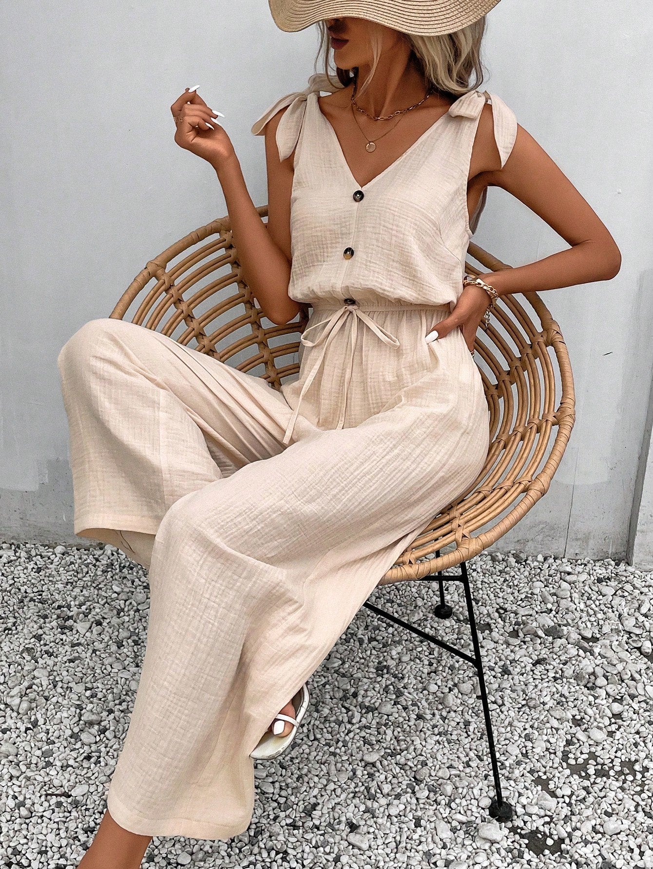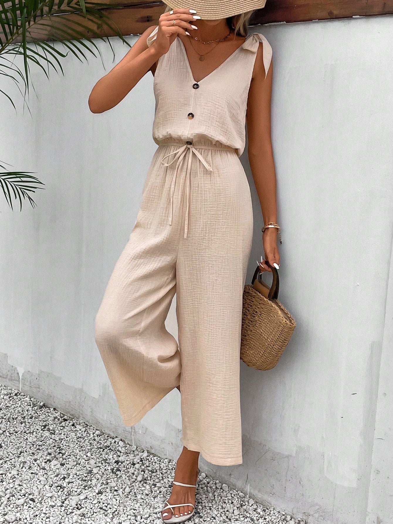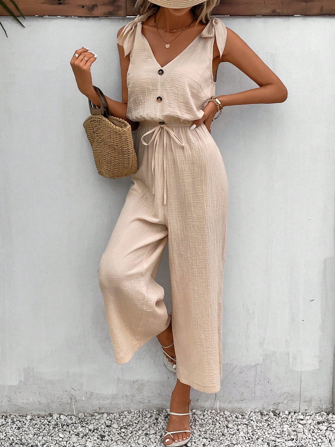 Tuta Senza Maniche Da Donna Con Decorazioni A Bottoni, Spalline E Design Con Fiocco