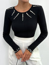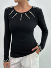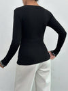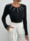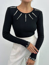 100% Cotone Nero Top Aderente A Costine Con Dettagli In Bottoni Dorati