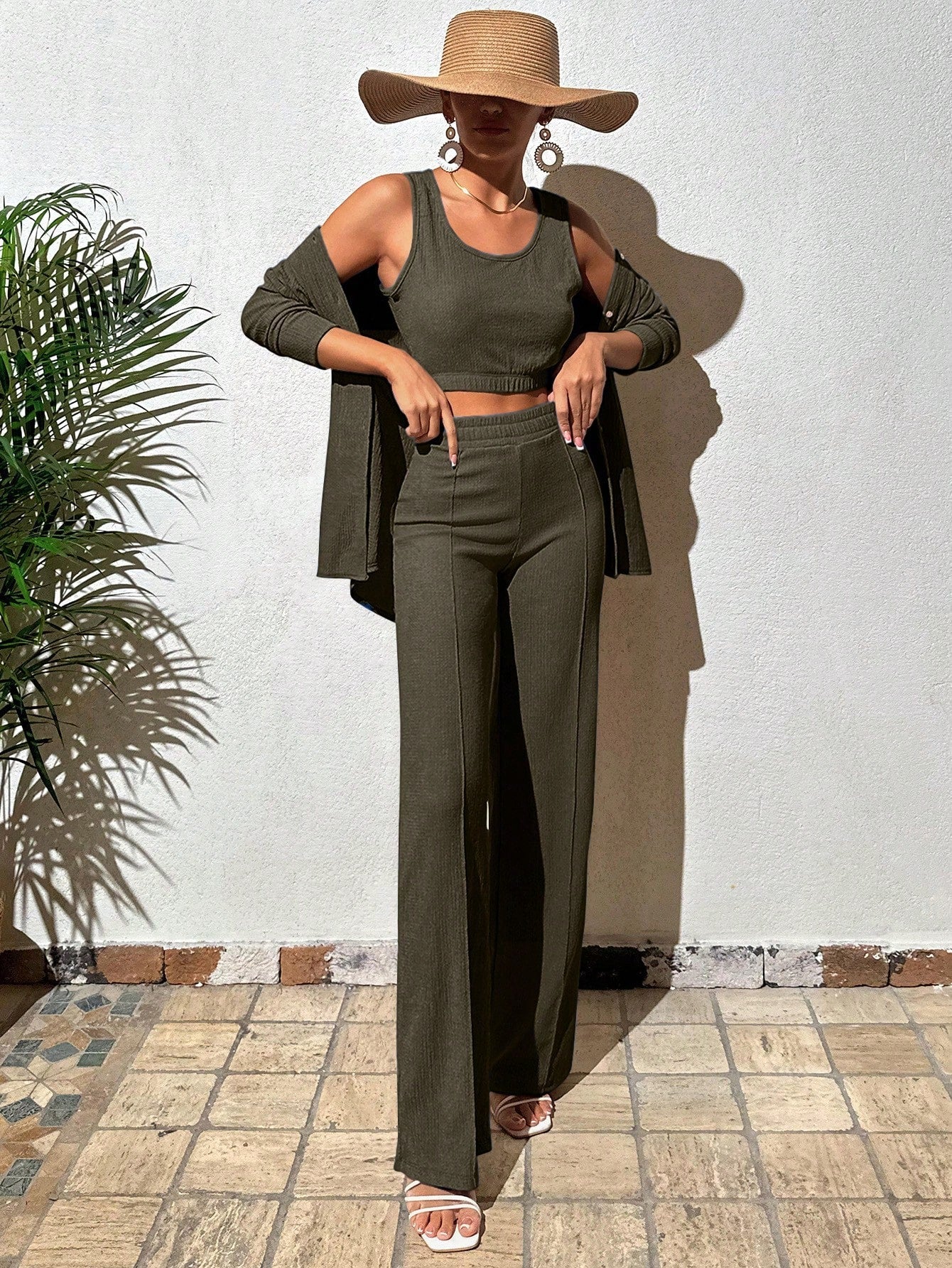 3 pezzi Set composto da top, pantaloni e giacca di colore tinta unita