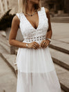 Abiti inserto in pizzo guipure a fessura alta scollo profondo chiffon