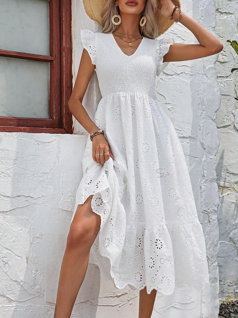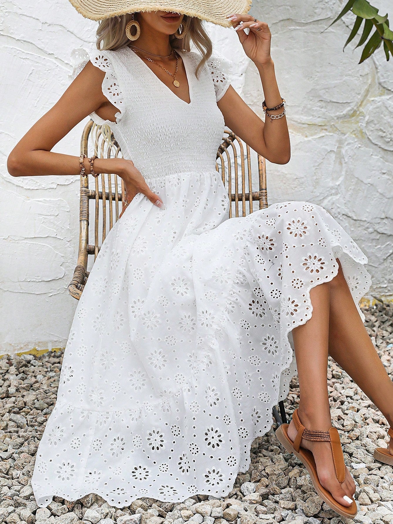Abiti ricamo ad occhielli con bordo a volant