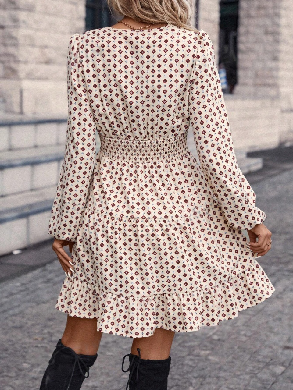 Colore : Multicolore Stile : Bohemien Dettaglio : avvolgente, Orlo arricciato, arricciato Tipo : A linea Tipo di motivo : stampa dappertutto Scollatura : Scollatura a V Lunghezza manica :...